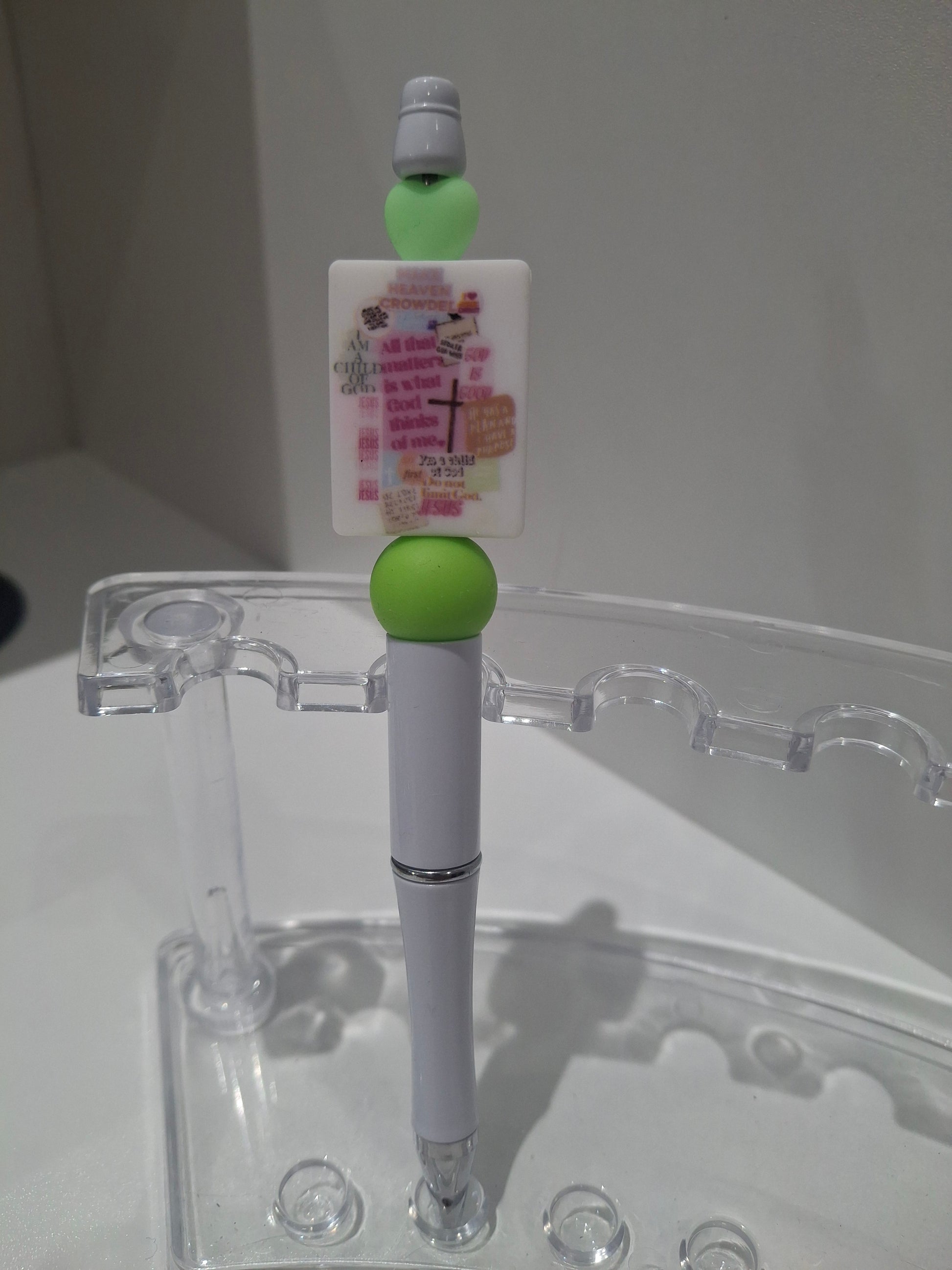 Diseño elegante, juvenil o clásico. ¿Te gustaría que te diseñe una imagén de un bolígrafo cristiano, oh con una frase y estilo específico: (moderno, elegante, para jóvenes, eventos, o para tí)? Puedo generarlo para tí visualmente, o crearlo a tu estilo.