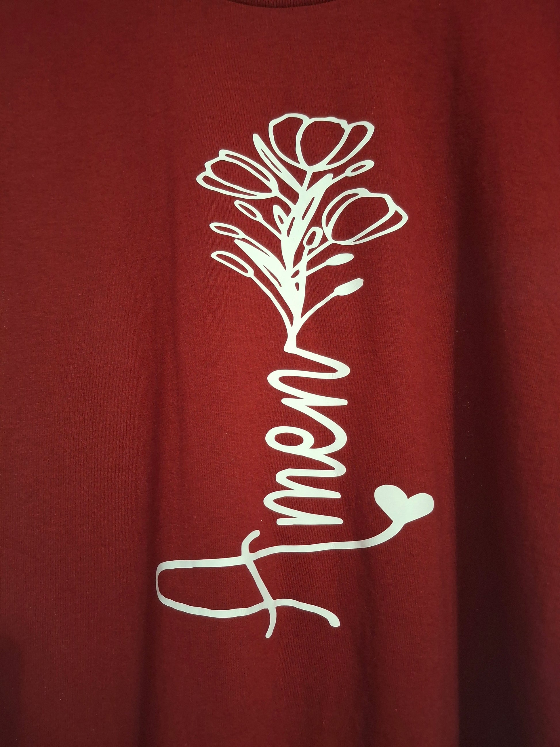 Camiseta roja “Amén” con diseño floral – Ideal para expresar tu fe con estilo. Hecha de algodón suave, estampado en vinil blanco, de alta calidad, cómoda, y perfecta para uso diario o eventos especiales.